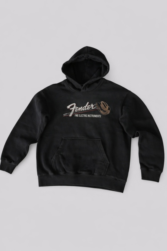 Czarna bluza marki H&M o luźnym kroju (loose fit). Wykonana z przyjemnego w dotyku materiału, zapewniającego komfort noszenia. Model z kapturem oraz praktyczną kieszenią typu kangur z przodu. Na klatce piersiowej znajduje się stylowy, lekko postarzany nadruk w klimacie vintage.