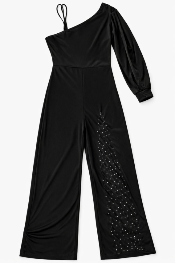 Ten model kombinezonu posiada długi rękaw z efektownym rozcięciem, które pięknie układają się podczas ruchu. Dodaje to stylizacji lekkości oraz elegancji, sprawiając że będziesz czuć się pewnie i szykownie podczas każdego wydarzenia. Wybierz coś naprawdę wyjątkowego dla siebie!