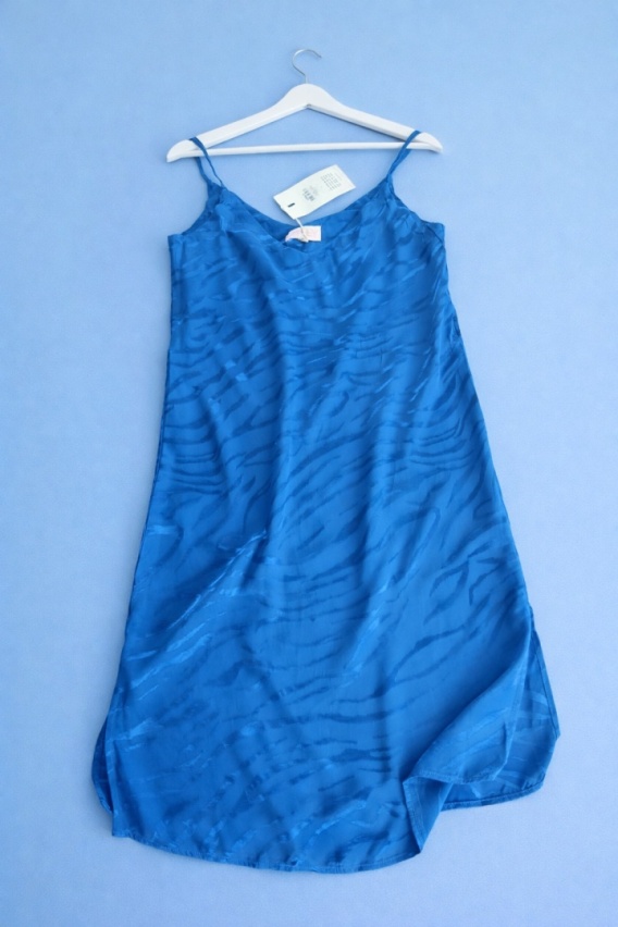 Na sprzedaż nowa sukienka marki ONLY w pięknym, intensywnie niebieskim kolorze z subtelnym wzorem. Model na cienkich ramiączkach, wykonany z lekkiego, lekko połyskującego materiału – idealna na lato, wakacje lub eleganckie wyjścia.
