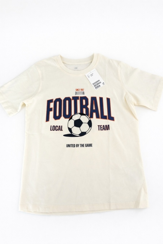 Stylowy i wygodny T-shirt dla dziecka, idealny na co dzień. Wykonany z miękkiej, przyjemnej w dotyku bawełny. Na przodzie znajduje się sportowy nadruk „FOOTBALL” z motywem piłki, który świetnie sprawdzi się dla małego fana sportu.